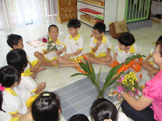 Our principal, Teacher Yvonne Lau, and my Navy Beans. She showed my children how to do flower arrangements during "My Community" theme unit.